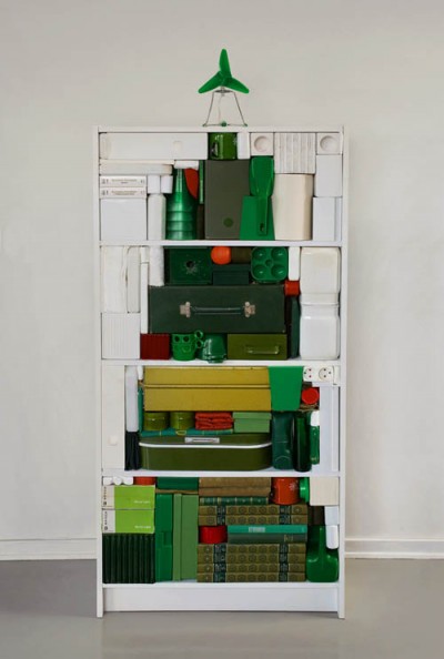 A plastic pipe is fitted with a green LED and powered by a 9volt battery. Made by Rarebeast. via